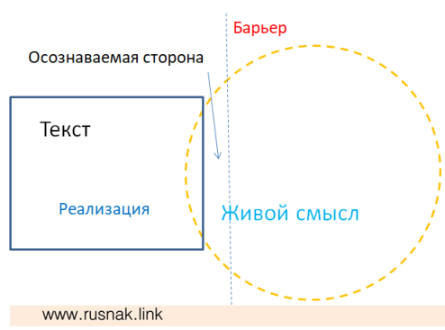 То, в чём пребывает живой смысл, — это «та сторона» (эта), откуда к нам постоянно приходят новые мысли, реализуемые в словах и другом. Это «место» (родина духа), откуда неожиданно возникают творческие значимости, которые, переходя на эту сторону, сторону сознательности.