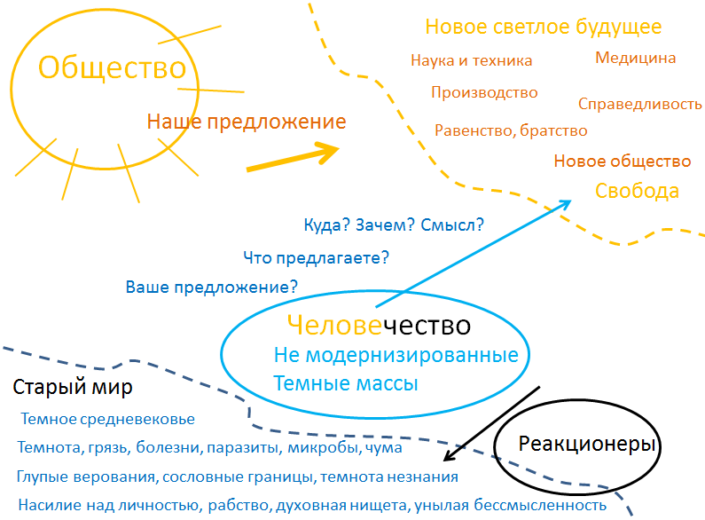 Или, остановка модернизации должна предполагать новое предложение. И тот, кто считает, что остановленный после окончательной модернизации мир может «существовать ни для чего», он глубоко ошибается. Смысл и вопрос «зачем это все?» — должен предполагаться в любом случае.