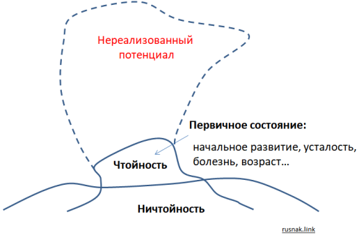 При этом не забывая о подключённости к ничтойности, будучи этой ничтойностью, которая, как разлитая волна безмятежности, гасит все толчки и удары, возвращая нас после сна к новому началу пути. И что означает уметь пользоваться своей ничтойной сущностью?