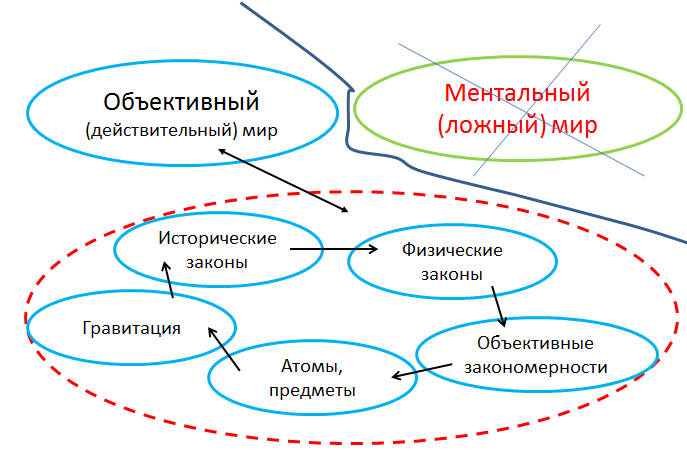 И если ментальное — это нечто иллюзорное, то действительным остается объективный мир. Мир, наполненный законами и «действительными» процессами.