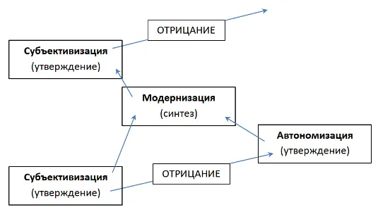 Subjectivization → Negation → Autonomization